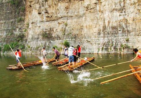 在離開野三坡的時候,我們開始了竹筏大戰(zhàn),這個游戲好玩,但是需要有大家的配合,只要有一個人不配合就會全軍覆沒,整個過程讓我們看到了大家有著團隊精神,積極的態(tài)度,和不拋棄不放棄的原則!